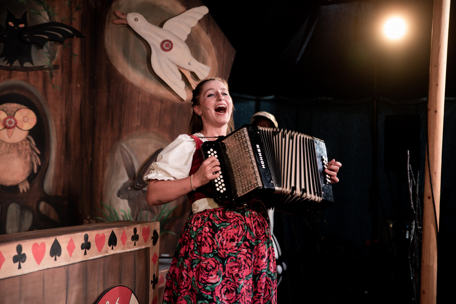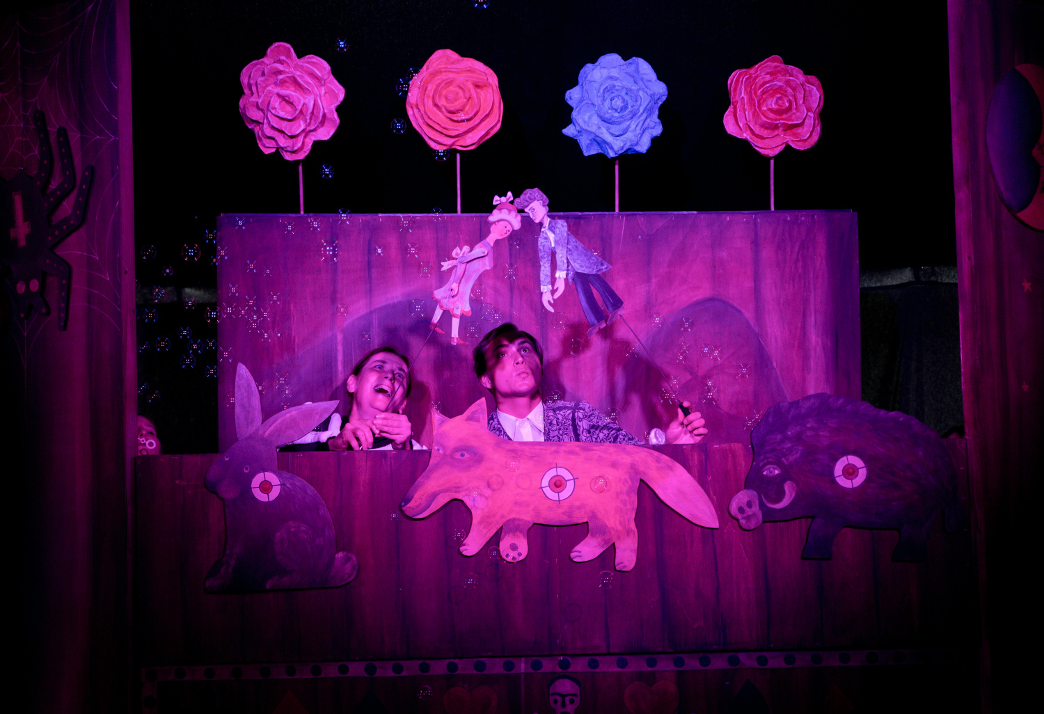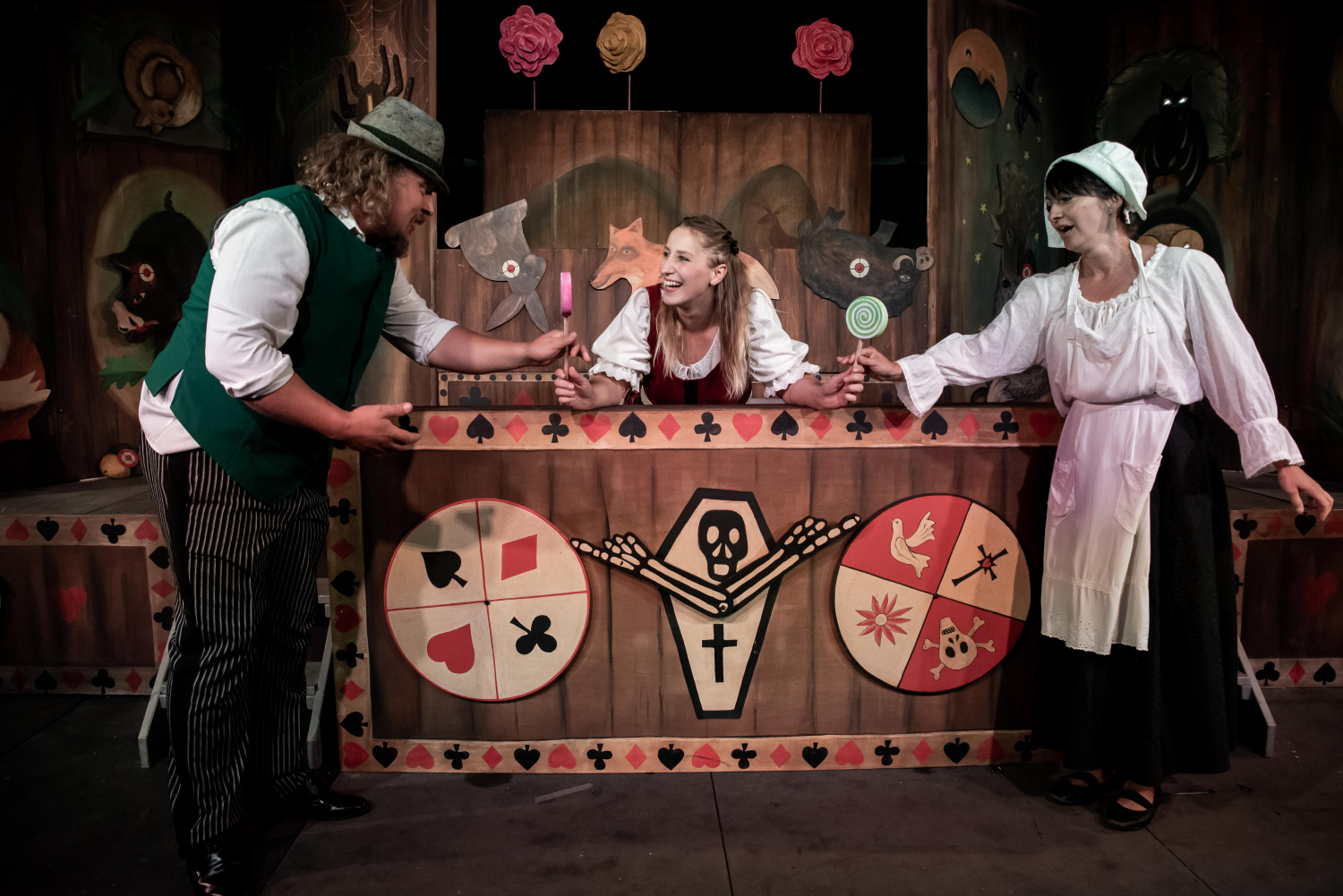 Celý příběh přitom odráží potulný charakter aktuální sezóny, v níž Bajka hraje mimo svou domovskou scénu. Na šapitó, kde našla dočasně útočiště, visí nápis "Střelnice”, zatímco uvnitř stojí dřevěná konstrukce připomínající maringotku, kde si mohou lidé na pouti či jarmarku něco vystřelit. Herci přicházejí na scénu v průvodu vedeném věštkyní Danielou Sedláčkovou, která