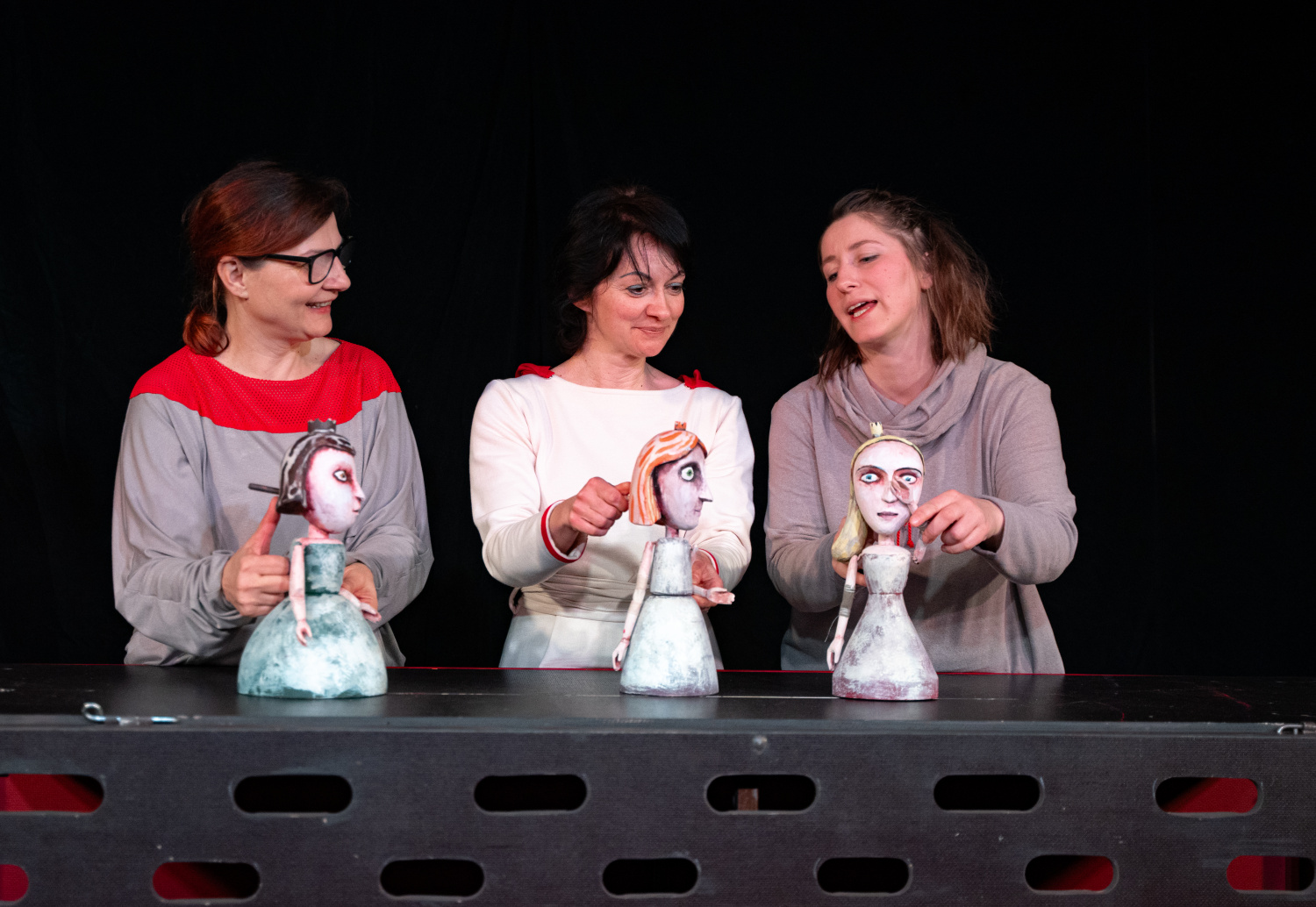 Marek Moravec se už dříve coby mladý Frankenstein ujal poprávu hlavní role a i v roli prince Bajaji opět předvádí velmi sympatický loutkoherecký um. Jakub Tomoszek si především užívá závěrečný turnaj a díky nápaditým loutkám dotváří humorné scénky poražených princů. Role princezen padly na vynikající trojici Dorotu Grycz, Ewu Kus a Danielu Sedláčkovou. Wandě Michalek perfektně sedla role moudrého koníka.