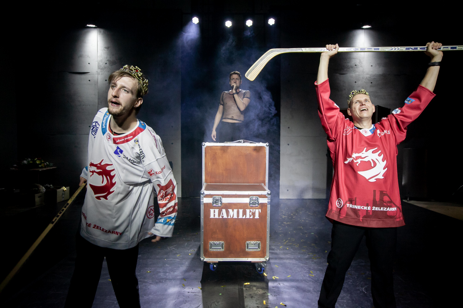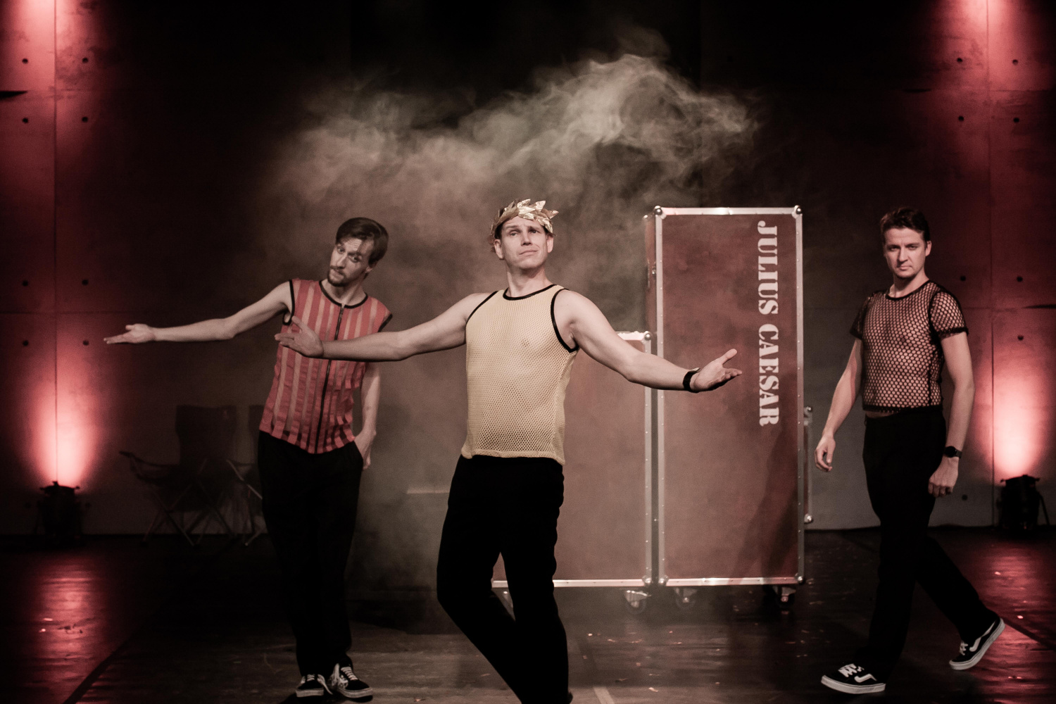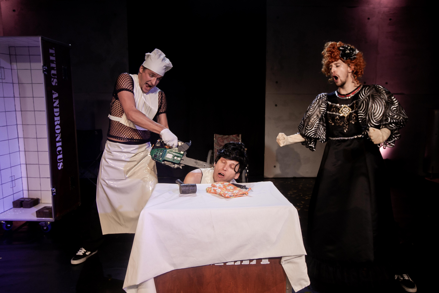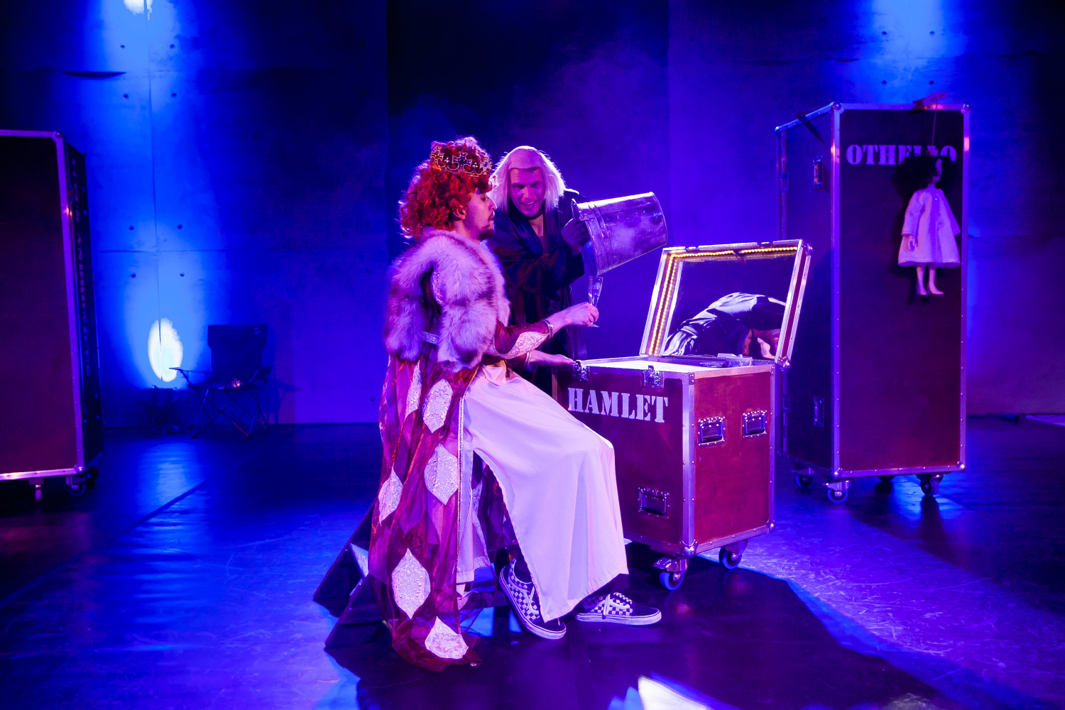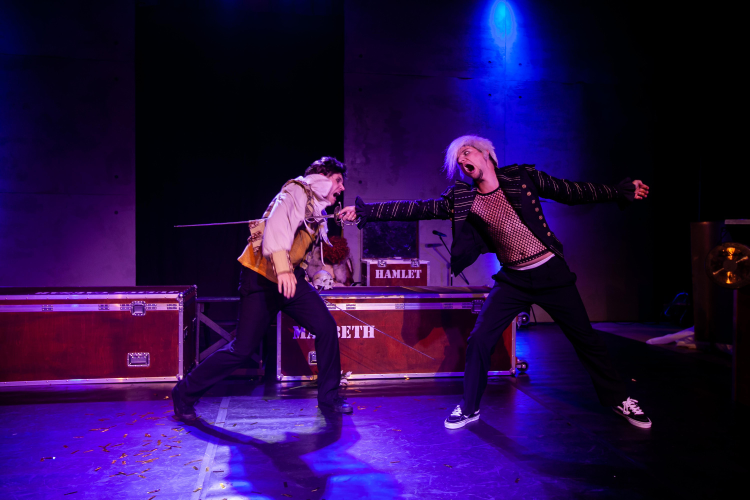 V inscenaci hrají pouze tři herci, Petr Sutorý jako Daniel, Ondřej Frydrych jako Jess a Denis Kuboň coby Adam. Toto trio předvádí na scéně skutečně herecký koncert, v němž střídají role jako na běžícím páse, a odhalují svůj nesmírný improvizační talent. V původním textu jsou zahrnuty rovněž vědecké poznatky a analýzy týkající se shakeaspearovských studií, českému divákovi tak může koncepce trochu připomínat cimrmanovské konference. V tomto případě však autoři odhalují například témata jako sexismus a rasismus, nikoliv ve snaze předlohu ztrhat, ale jako kritiku současných hyperkorektních tendencí, v nichž není prostor pro kritické uvažování a kontexty. Těšínští představitelé tyto skutečnosti převádějí na scénu s gustem, jejich komické načasování je až na výjimky bezchybné a udržuje diváka v neustálém očekávání, mimo jiného i díky neustálým přechodům mezi „shakeaspearovskou rolí“ a „vědeckou postavou“. Ryze pánské obsazení navíc dodržuje zásady alžbětinského divadla, kde i ženské role byly hrány mužskými herci – v tomto případě převažovaly dámy Denise Kuboně, který například velmi romanticky ztvárnil Julii, místy protkanou vzteklým Adamem. Mnohé aspekty byly adaptovány do českého prostředí, a tak se shakeasporovští panovníci stali na okamžik prezidenty, kde dominoval Petr Sutorý jako Miloš Zeman. Některé královské spory se pak odehrávaly v hokejové aréně a v třineckých dresech, jindy se například kuchtila pomsta, kde se Ondřej Frydrych proměnil v krásně psychotického šéfkuchaře.