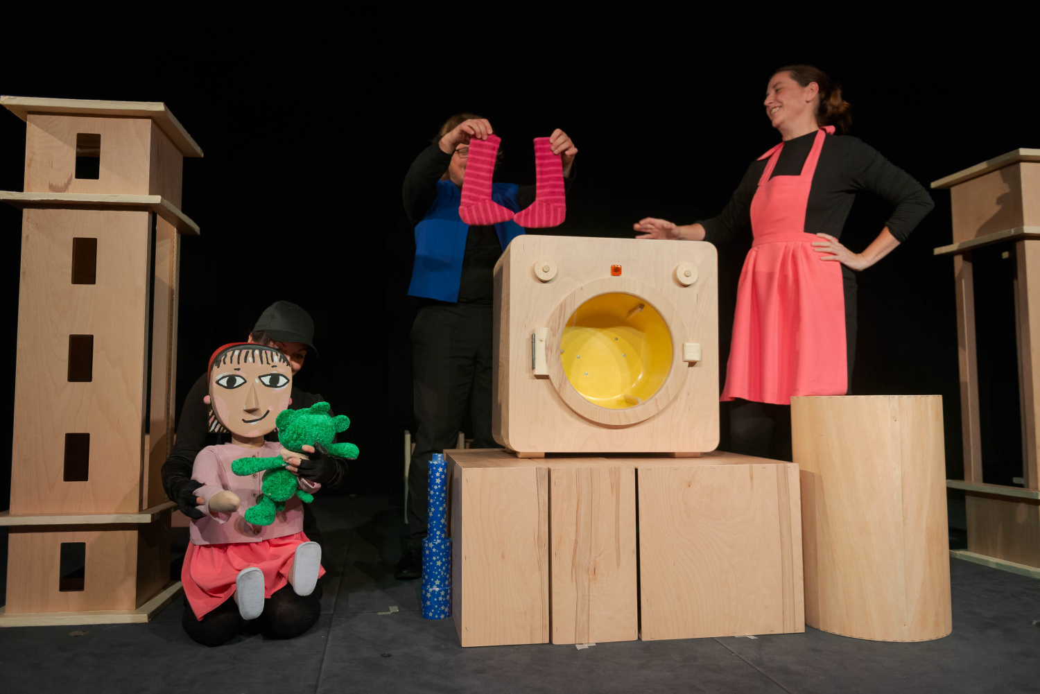 Nie miałam kłopotu z ustaleniem, z której opowieści pochodzą poszczególne części przedstawienia. Spodobało mi się to, że ramą jest historia Małej Be i jej rodziny. Bardzo fajnie i sensownie zostało to pomyślane. Podobały mi się też lalki – są fantastyczne, widać w nich rękę artysty. Jakość tych lalek sprawia, że przedstawienie zrobiło się atrakcyjne również dla widza dorosłego. Podobała mi się też bardzo scenografia. Minimalnymi środkami zrobione niesłychanie bogate przedstawienie. Jestem bardzo zadowolona. Jestem dumna, że to moje skarpetki właśnie zainspirowały państwa Valkomerów.